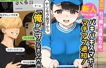 エロ漫画同人誌レビュー『【実話】引っ越し見積もり中、新人ちゃん(22)のバキバキスマホにマチアプ通知!ヤリモク男子から「俺が」守らなきゃwww』 作品のあらすじ・導入 チャラ男・佐藤大地が出会ったのは、引っ越し見積もりで訪れた先にいた…